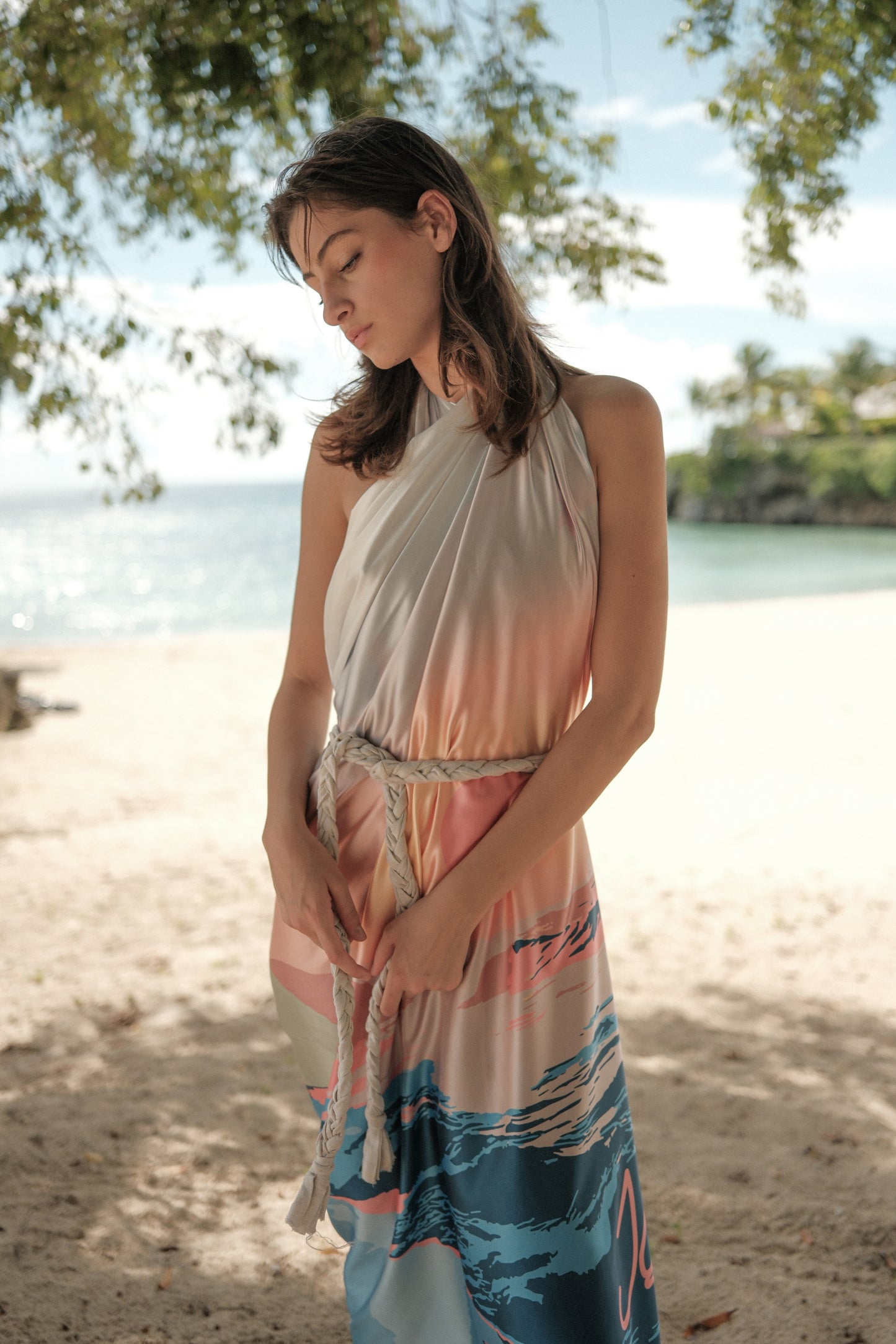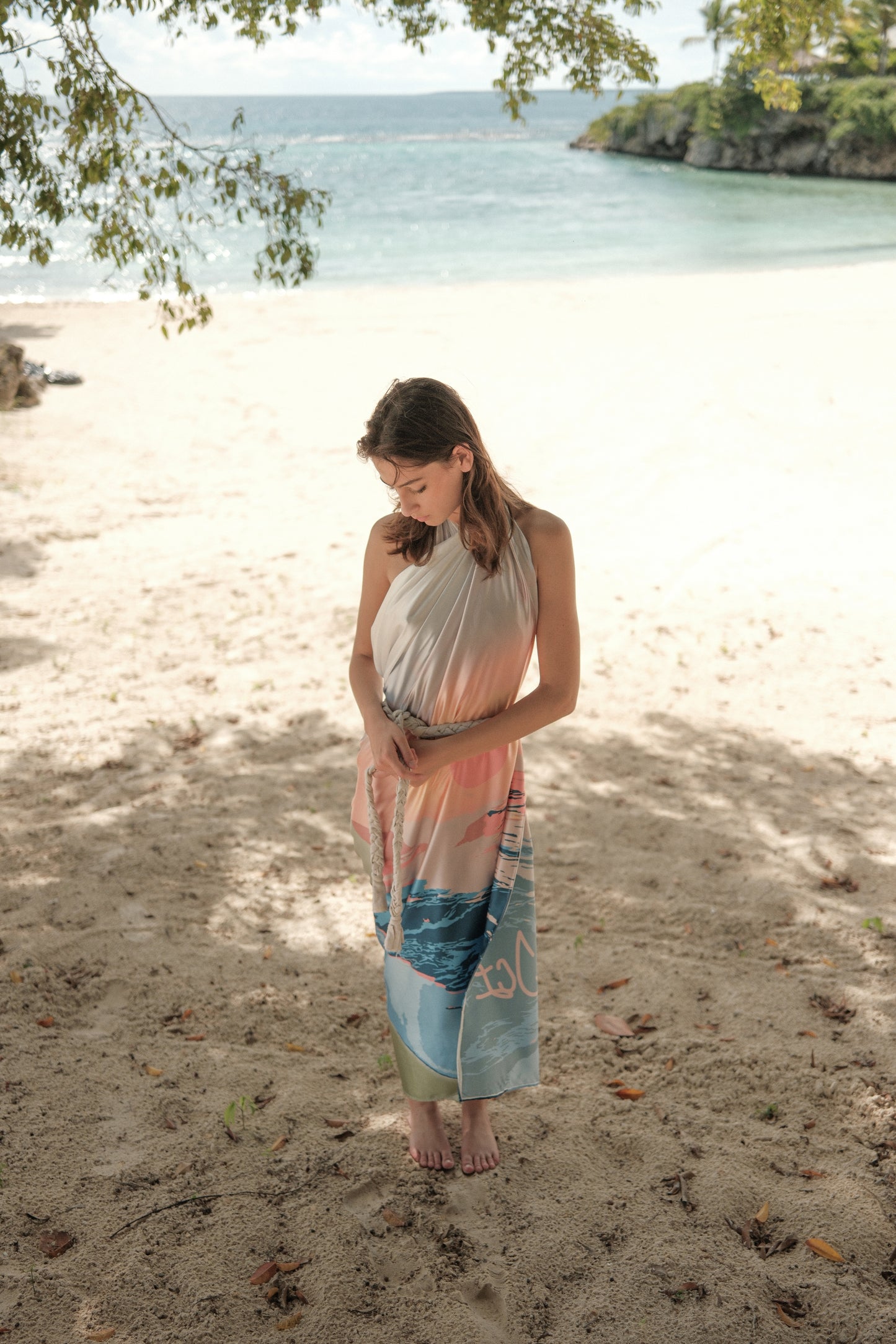 Drape yourself in luxury with our Sunset Pareo. Made from 100% pure silk, it can be worn as a skirt, dress, or anything your heart desires. Enjoy the stunning and vibrant Sunset of La Romana, Dominican Republic pattern for an instant island vibe. Elevate your summer style with this versatile and elegant piece.